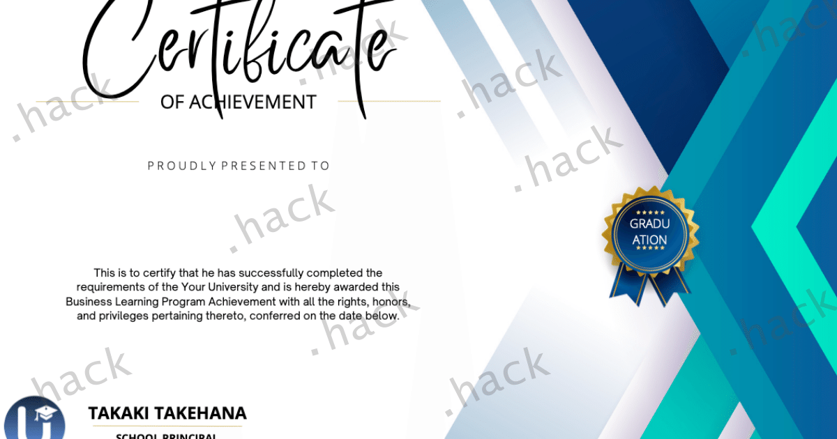 こちらは、ユアユニ全単位取得者の第一号の証明です。